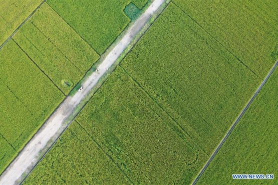 Aerial photo taken on Sept. 23, 2019 shows the paddy